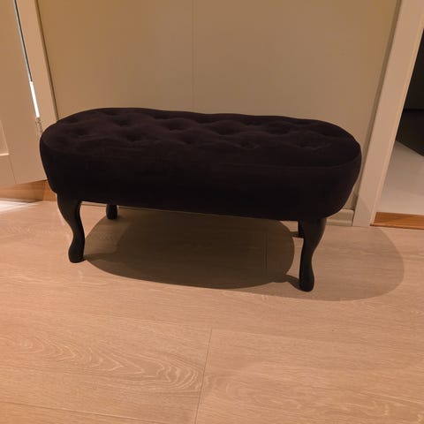 Allsidig, lettplassert og behagelig puff kledd i myk fløyel. Puffen er lite brukt, har mest stått til pynt, så framstår som ny!
