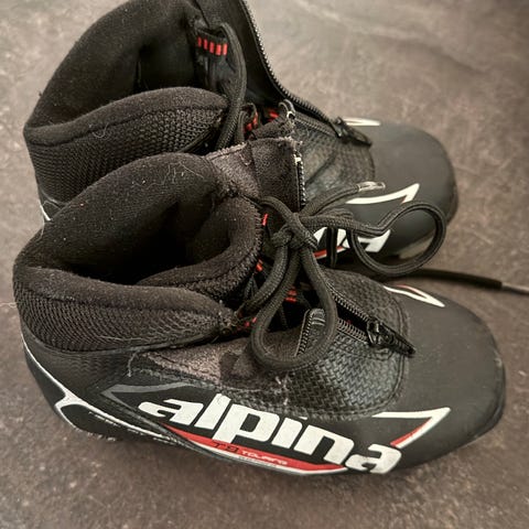 Begge skiene er 150 cm lange. Det ene paret smørefrie. Alpina skoene str 37, lite brukt. Tecnopro skoene str 35,5 mer brukt men i god stand. Alpina sko og et par av skiene kr 300. Tecnopro og et par av skiene 200. Alt kr 450.
