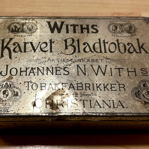 Selger en boks karvet bladtobak fra C.Pedersen&Sønn fra christianssand.