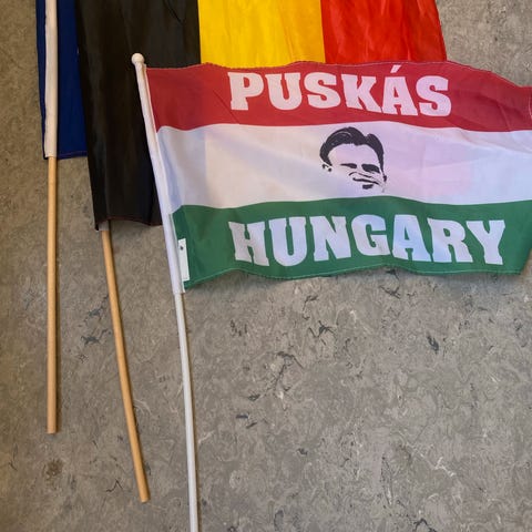 Flagget kan justeres i høyden med rød tråd på flaggstangen