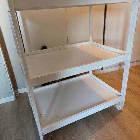Praktisk med hjul så man kan ta med sengen ut av soverommet. Høyden kan stilles etter høyden på sengen, og hjulene kan tas av hvis sengen er lav for å få bedsiden helt inntil.