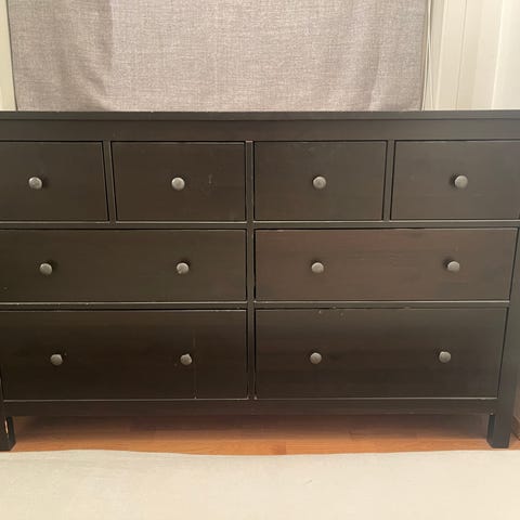 Kommode nesten ikke brukt , som ny. Farge sort. Alle målene står på ett av bildene