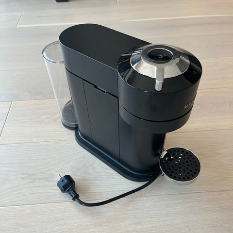 Vertuo Nespresso kaffemaskin i liquorice black. Maskinen er designet for bruk med Nespresso-kapsler og har et kompakt design som passer for hjemmebruk. Enkel å betjene med avtakbar dryppskål for enkel rengjøring.