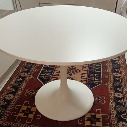 Dockstad bord fra IKEA selges billig grunnet tilkomne merker i bordplaten (se bilder). Bordet funker helt fint, men merkene er vesentlig godt synlige. Med en runde maling eller bare en duk vil bordet fungere supert.