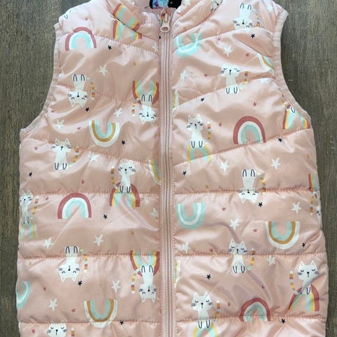 Lite brukt vest. Den har en bitteliten rosa flekk (tusj?) Se det siste bildet.