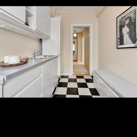 Kjøleskap og oppvaskmaskin er oppgradert i senere tid, men med ukjent alder. Begge er i svært god stand. Komfyr er fra 2004, funker som den skal, men bærer preg av alder.