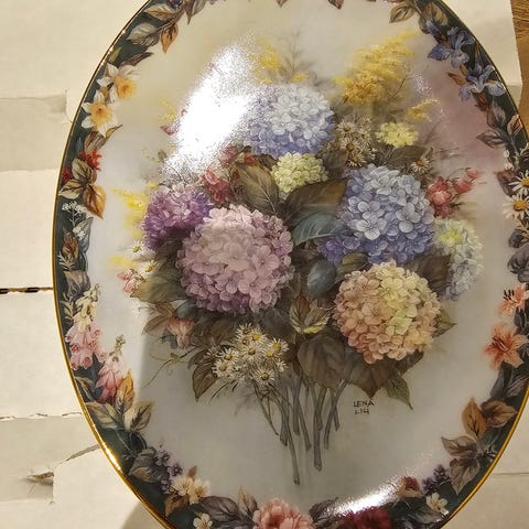 Lena Liu Floral Cameos Porselensfat Oval 1996