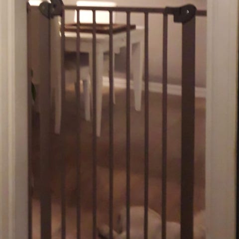 Porten passer som standard døråpninger med bredde 73,66–86,36 cm. I pakken følger det med en forlengelsesdel (15,24 cm) som gjør at bredden kan utvides til 101,6 cm.