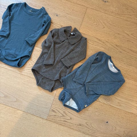 12 tskjorter, 2 singlett, 5 shorts, 4 gensere, 1 sett, 7 kjoler, 1 skjørt, 1 sommersovepose, 2 strømpebukser, 1 hel dresser, 1 badehette