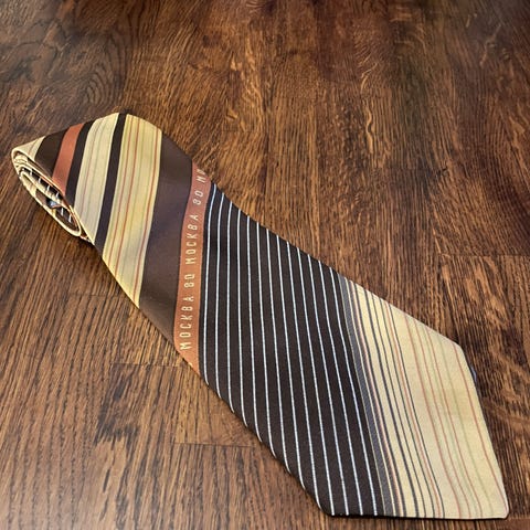 This tie is vintage, uncertain of the exact year, would estimate perhaps from the sixties, seventies, eighties.