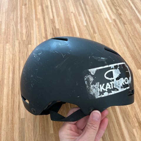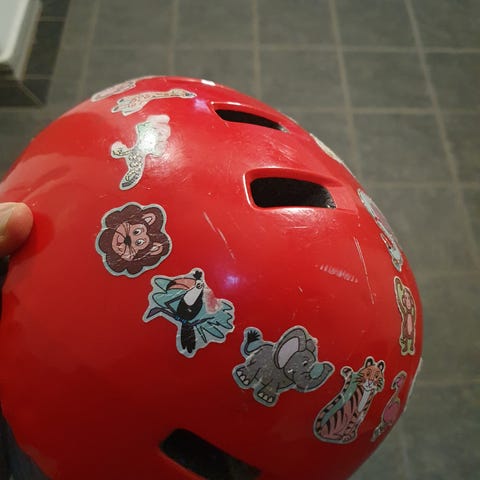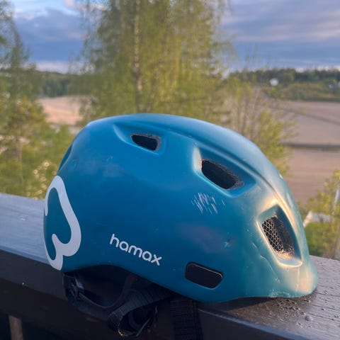 Sykkelhjelm til barn gis bort. Hjelmen har et justeringshjul bak for tilpasning av størrelse. Designet for barn, str. 46-53 cm. Må hentes på Bærums Verk eller i Oslo sentrum.