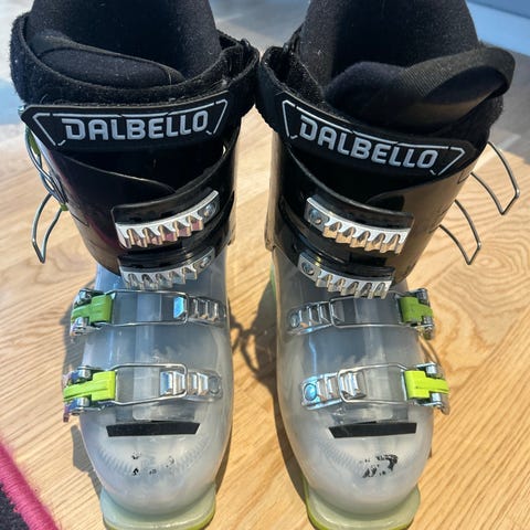 Dalbello alpinstøvler for barn selges. Passer til fotlengde 21,5–22,5 cm (tilsvarer ca. EU 34–35).
