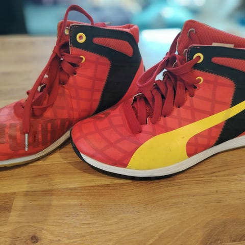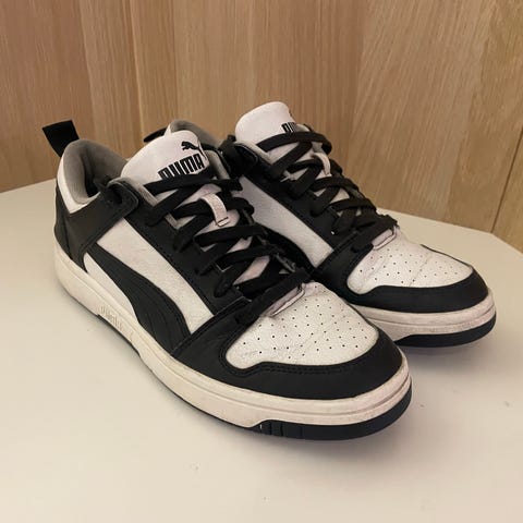 Kjøpte disse på en Puma-butikk i USA. De har egentlig aldri blitt brukt (har de samme i sort som jeg har brukt i stedet) så har bare ligget i et skap her. Ser at skinnet er litt "skrukkete" et par plasser etter å ha stått litt i klem i et skoskap lenge. Se bilder. Men tipper det mykner opp og jevner seg ut om du smører de med skinnkrem eller impregnering.
