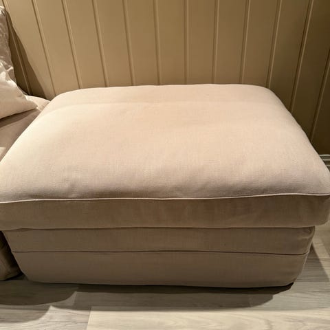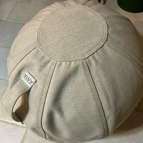 Denne beanbagen er ikke fylt med kuler, men med tempurbiter! Helt fantastisk å sitte i. Selger den motvillig, fordi den er stor og vi får ikke ordentlig plass til den i stua. Følger også med en fotpuff (sett på bilde 5-6).
