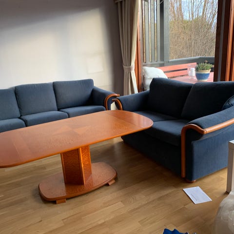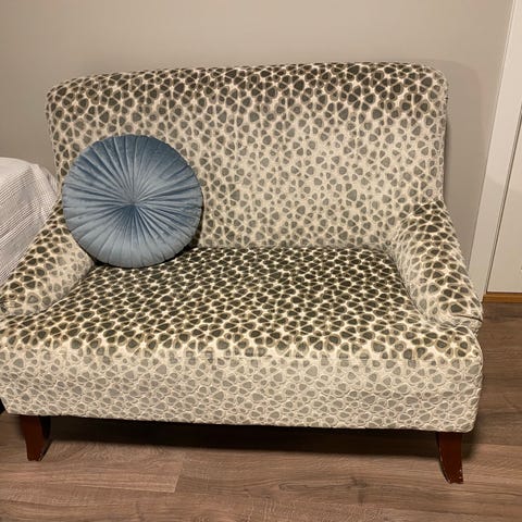 Pent brukt sofa med store og myke puter. Merket er Crate & Barrel (fra USA). De ekstra putene på tredje bilde følger ikke med. Må hentes selv.