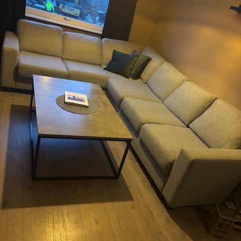 Stor, god og høy hjørnesofa selges. Plass til ca 6 stk