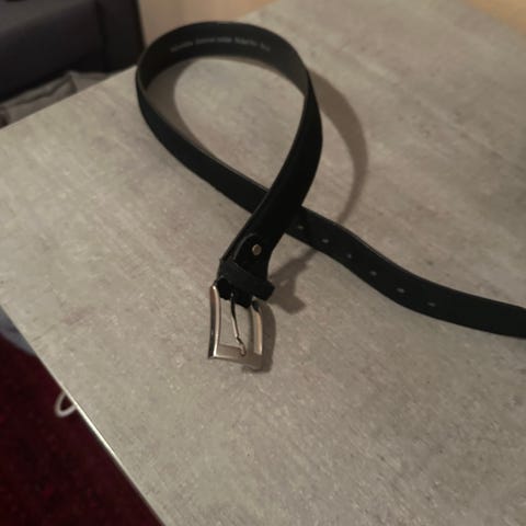 Herre belte i svart skinn med metallspenne. Passer til dress eller andre uformelle antrekk.