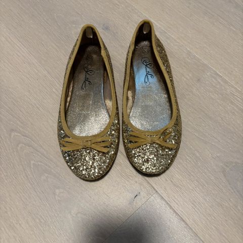 H&M ballerinasko for jente i størrelse 29. Skoene er svarte og har en enkel design med en stropp over vristen og en liten sløyfe foran. De er laget i syntetisk materiale og har en flat såle.
