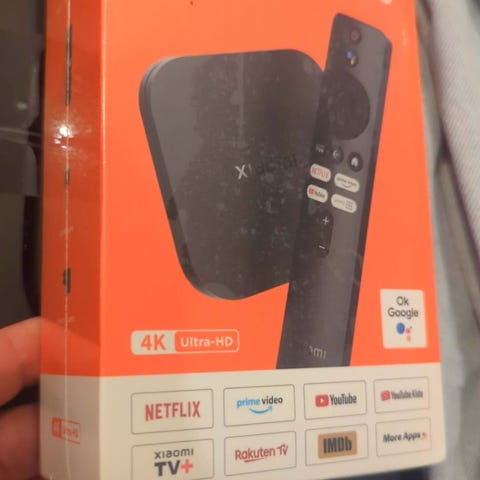 Google LEAP-3S-V2 4K UHD Streaming TV-boks i hvit farge. Enheten støtter 4K Ultra HD-oppløsning og har tilkoblinger som USB, HDMI, Ethernet og strøm. Inkluderer fjernkontroll med stemmestyring. Kompatibel med tjenester som Netflix, YouTube, Disney+ og Prime Video. Strømforsyning: 5V 2A.