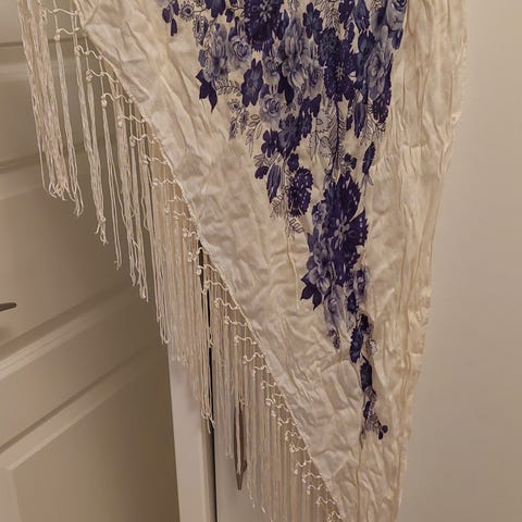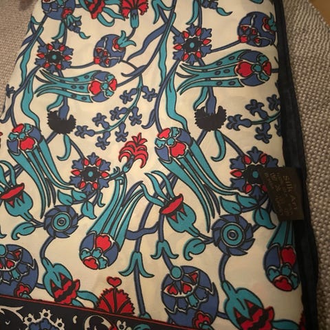 Sjal fra Gudrun Sjøden. Bomull og ull. Nydelig motiv og fine farger.