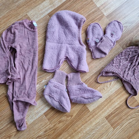 Klespakke i ull med to bukser fra Reflex, en body fra Reflex og en body fra Hummel.