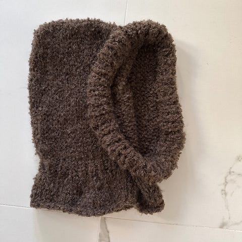 Lett, mykt og varmt garn i som ikke klør. Grågrønn-melert farge.