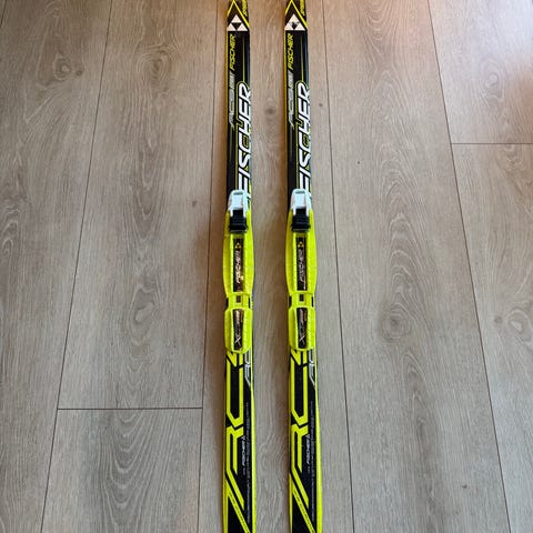 Selger et par Fischer RC Sprint langrennski i 120 cm med Rottefella-bindinger.