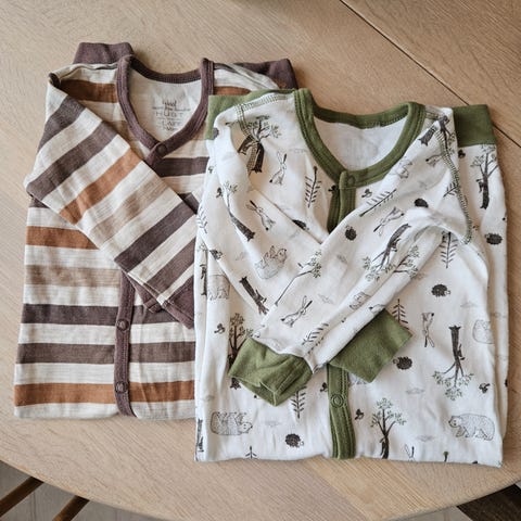 stor pose med klær str 74 selges. inneholder blant annet bodyer, bukser, pysj og strikkadress og lue
