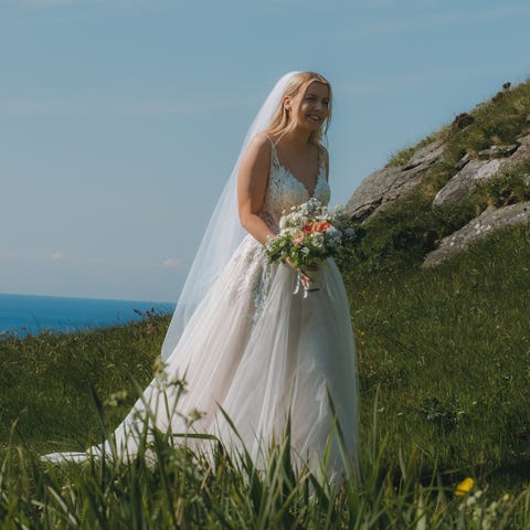 Jeg brukte aldri kjolen fordi jeg bestilte den kort tid etter min siste fødsel og gikk ned mer enn antatt i mnd før bryllupet.