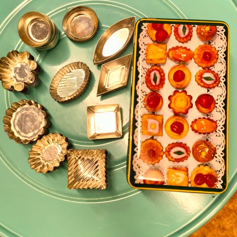 Atten pent brukte sandkakeformer med glatt overflate inni.