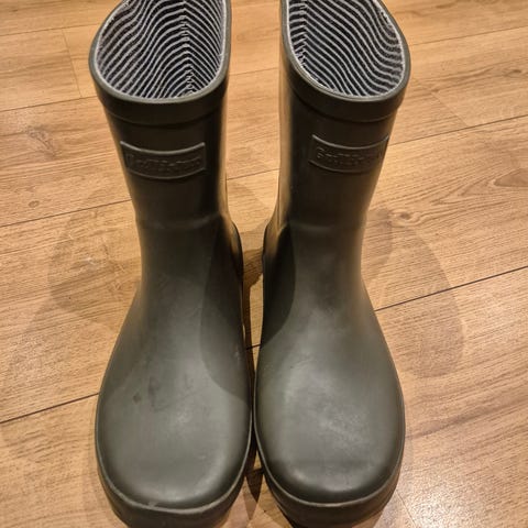 Selger sorte, høye regnstøvler fra Viking i str 35. Støvlene er lite brukt, men har noen små riper oppå. Ellers i god stand og mye brukt igjen.
