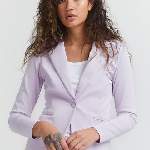 Klassisk lang blazer fra Ichi. Kremhvit.