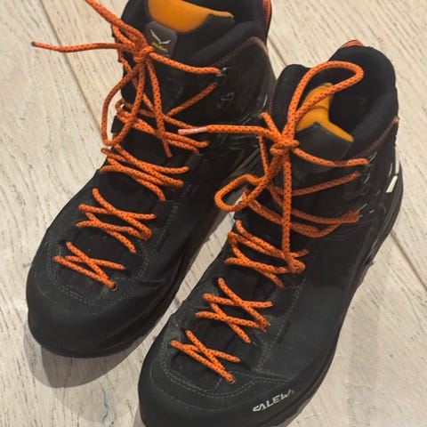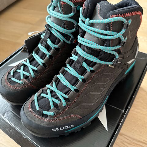 Salewa MS MTN Trainer Mid GTX er en fottursko i størrelse 39, 25cm Skoen har en slitesterk yttersåle med Vibram-grep og er designet for fjellturer og krevende terreng. Materialet og konstruksjonen gir støtte og beskyttelse til foten under utendørsaktiviteter. brukte en gang