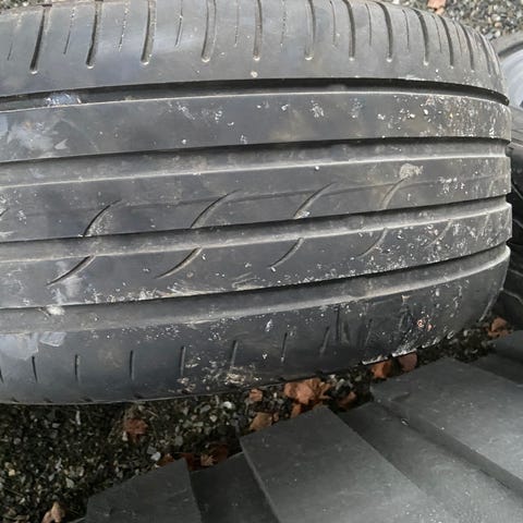 Felgene har stått på ein c-klasse, kjøpte dei inn til ein CLK, men dei passet ikkje. Kjøpte to nye dekk den 10.01.26. Dei to andre er brukt, men har fin mønster.