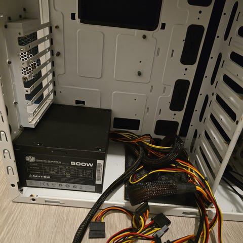 Corsair 220T RGB PC-kabinett. Kommer med en del eldre og utdaterte komponenter. Ingen vifter, ingen psu, ingen harddisk. Kabinettet er designet for gaming og har god ventilasjon og god plass til komponenter. Fint kabinett og et godt startpunkt om man skal sette opp en hjemmeserver eller lignende.