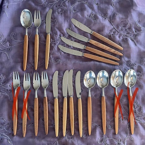 Retro Skaugum bestikk i stål fra Geilo knivfabrikk.