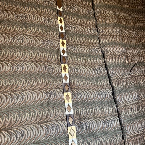 Selger et helt nytt og ubrukt pampeano belte av høy kvalitet. Beltet har et unikt, håndlaget mønster i blå, hvite og svarte toner som gir et eksklusivt og stilrent uttrykk. Passer perfekt til både hverdagsbruk og penere antrekk.