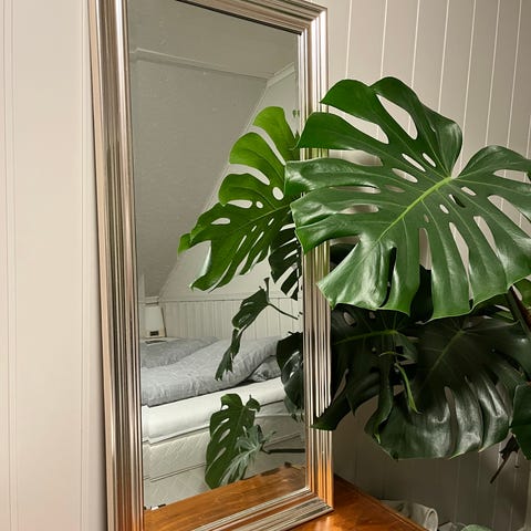 Pent speil med sølv ramme høyde 130 cm bredde 40 cm