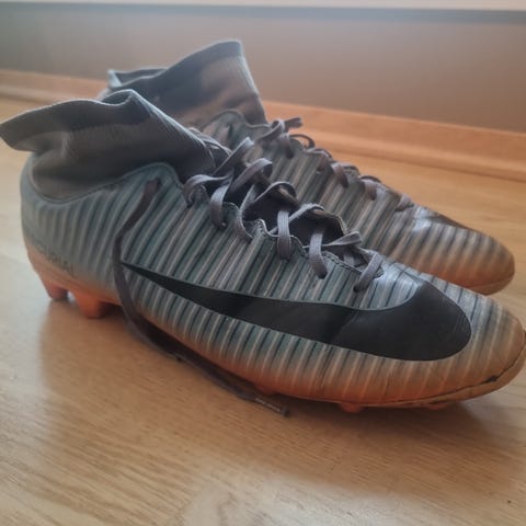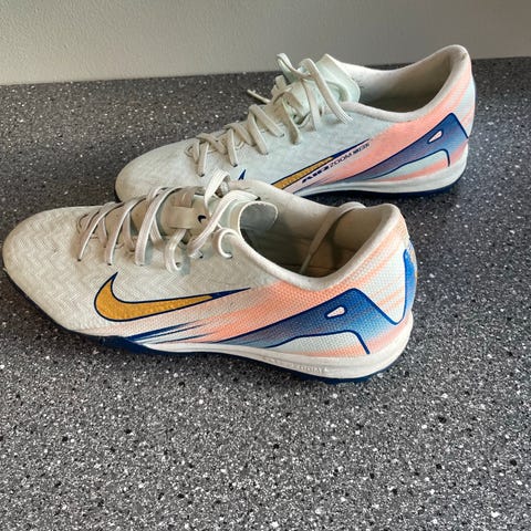 Nike Mercurial Turf fotballsko i gul og svart farge. Designet for bruk på kunstgressbaner med gummisåle for godt grep. Skoene har en ankelhøy overdel uten lisser for en tettsittende passform.