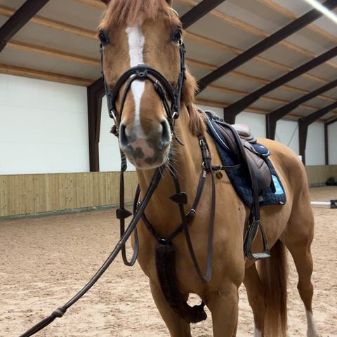 Veldig kosen og kjekk hest, snill å sko og på transport , snill på stall og paddock og barbere.
