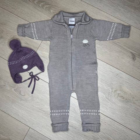 Lillelam ulldress og lue i fargen Old Rose, størrelse 68 og luen 44-46 selges.