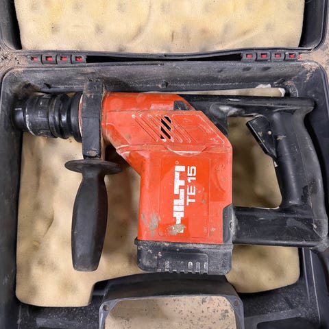 Hilti TE 2-M borhammer med tilhørende tilbehør i oppbevaringskoffert. Produktet inkluderer strømledning og bor. Egnet for boring og lett meisling i betong og murverk.