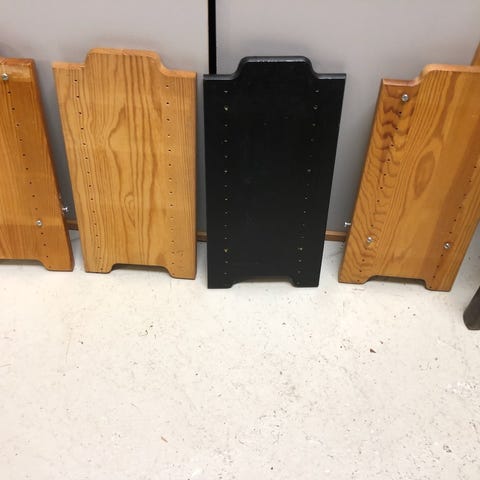 Hyller og vanger til BBB reol - grønnmalt og natur lakkert