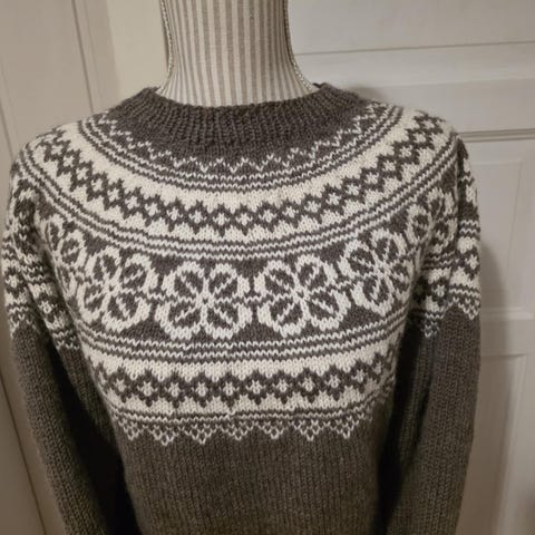 Ny,håndstrikket Bøvertunkofte selges for kr 1400,-. (Evt porto kommer i tillegg.)