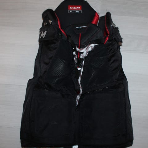 CCM Jetspeed ishockeybukse i størrelse senior XL/TG. Buksa er svart og designet for ishockey. Den har polstring for beskyttelse og er tilpasset voksne brukere.
