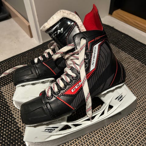 CCM Ishockeyskøyter for barn i størrelse 35. Skøytene er designet for ishockey og har standard bredde (Regular). Egnet for barn som spiller ishockey.