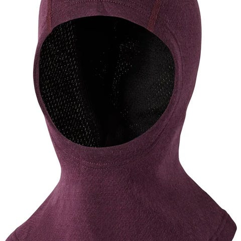 Helly Hansen balaclava for barn i lilla farge, laget av merinoull. Størrelse 57-58 ca 8-10 år, tilpasset for jente. Materialet gir varme og komfort, egnet for bruk i kaldt vær.