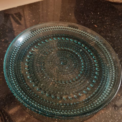 Ubetydelig brukte asjetter fra Iittala Kastehelmi serien selges samlet. Asjettene er i farge grå og koster kr. 239,- per stk. i butikk.