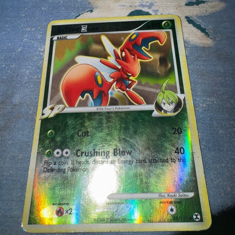 Pokémon Scizor EX samlekort med angrepene Cut og Crushing Blow. Kortene har 80 HP og er illustrert med Scizor. Passer for samlere og spillere av Pokémon-kortspill.