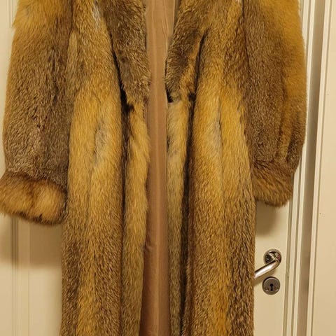 Svigermors Sølvrev pels kåpe fra Madsen Pels . 25 år brukt ettpar ganger bare. Sydd av rev fra egen gård. Løs hette som kan festes på. Pels ser helt ubrukt ut. Gi bud